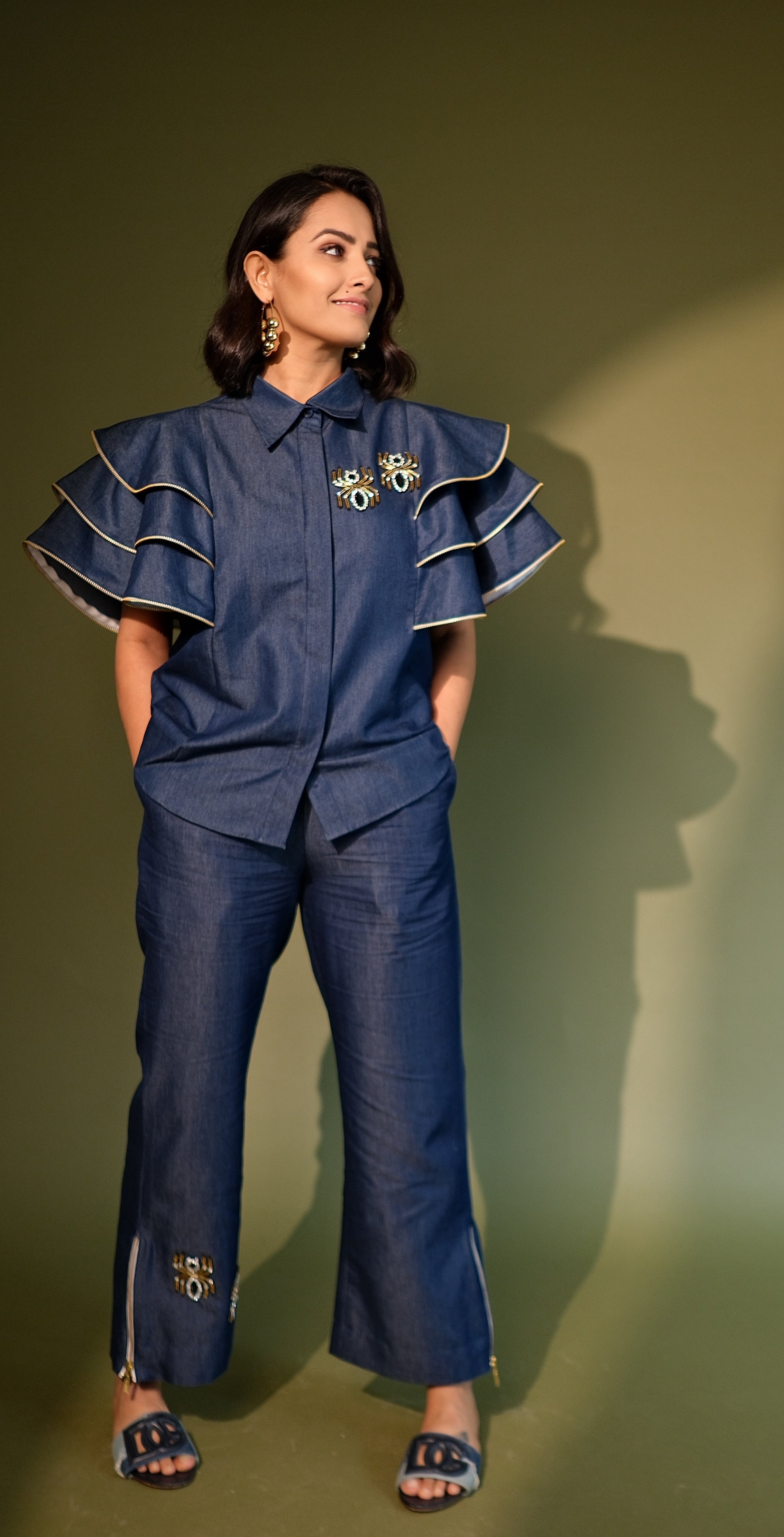For best results, we recommend dry cleaning after the first wear. After a few dry cleans, our pieces can be hand-washed separately in cold water with a mild detergent. Avoid soaking, wringing, or washing with force. Always dry in the shade, as direct sunlight may cause color fading over time.